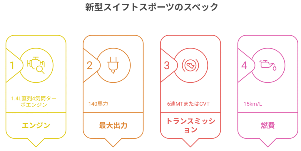 新型スイフトスポーツの基本スペックは、以下の通りです。