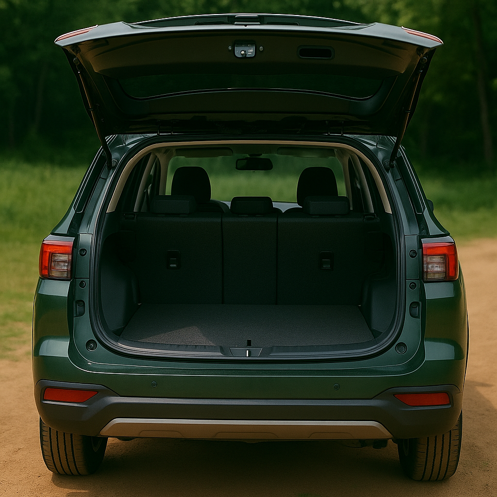 A: 後部座席を倒した際のラゲッジ容量は軽SUVの中で 平均~やや広め の部類と予想されています。大人2人+買い物程度であれば問題ないと思われますが、家具など大型荷物を積むには高さや開口部・床面の広さに制限があるため、実車で確認することを強くおすすめします。
