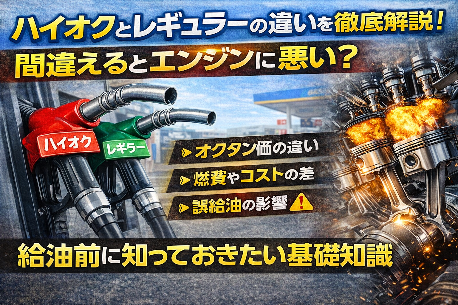 この記事では、ハイオクとレギュラーの違いを仕組みから整理し、どちらを入れるべきか、間違えたらどうなるのかまでをわかりやすく解説します。