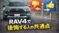 例えばRAV4のような実用性や走行安定性を前面に出したSUVと比較すると、ハリアーの上質志向が強調されます。ここではデザインや静粛性が評価軸になりやすく、実用面の優先順位によって印象が分かれることがあります。